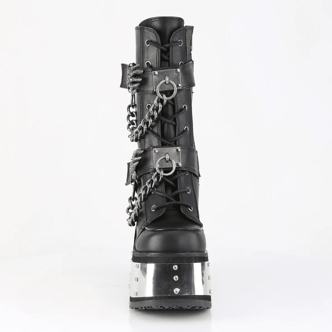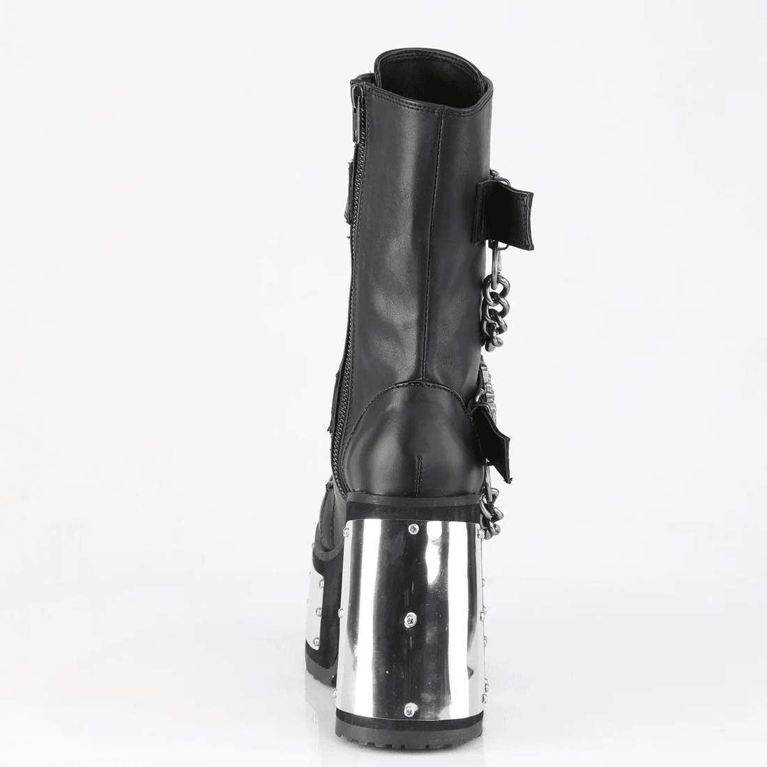 Demonia Cult Camel-120 Black Vegan Leather Boots