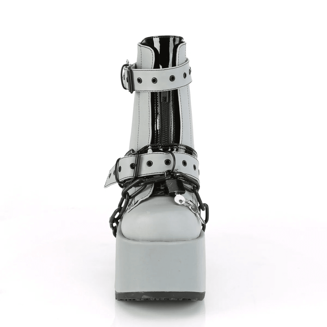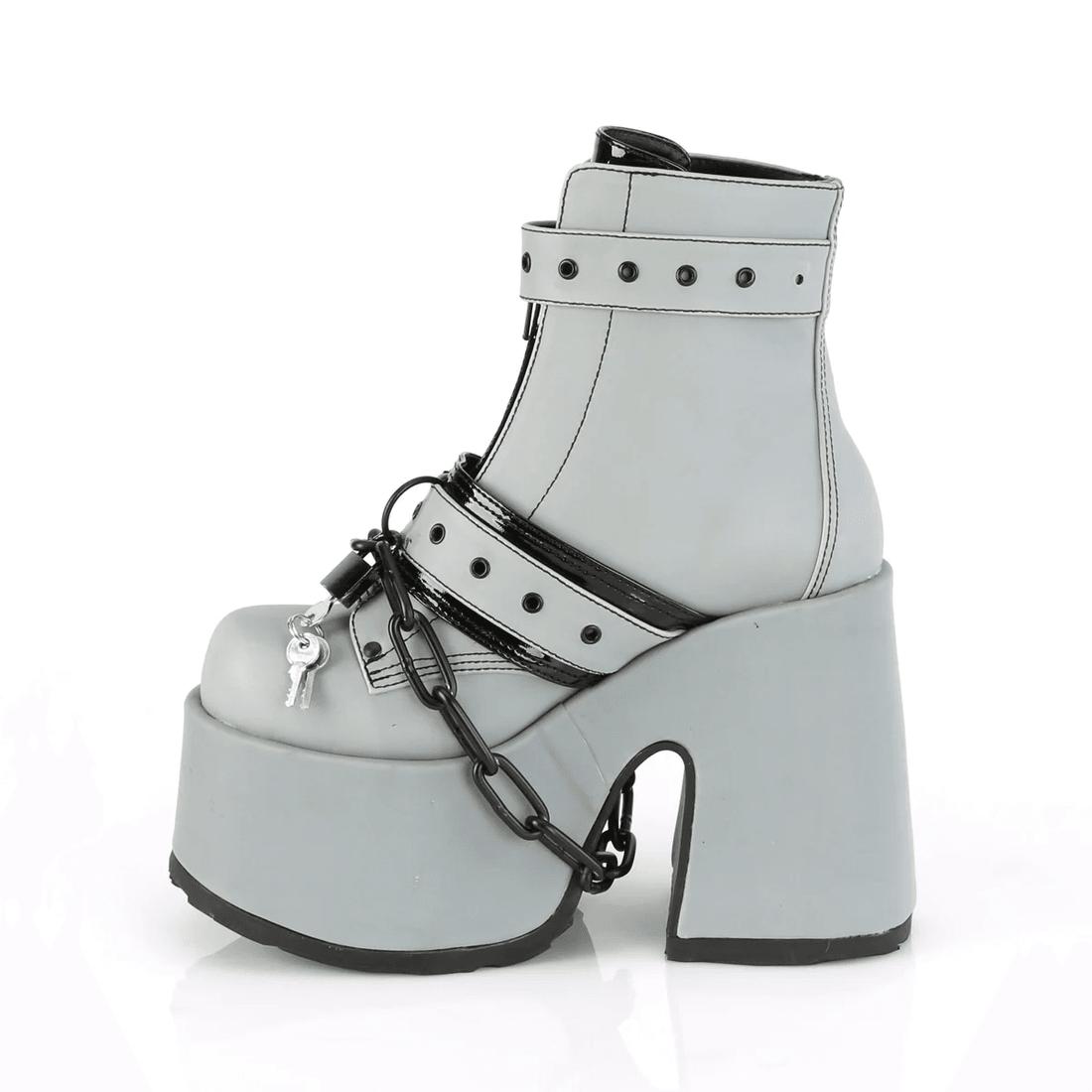 Demonia Cult Camel-205 Gray Reflective Vegan Leather