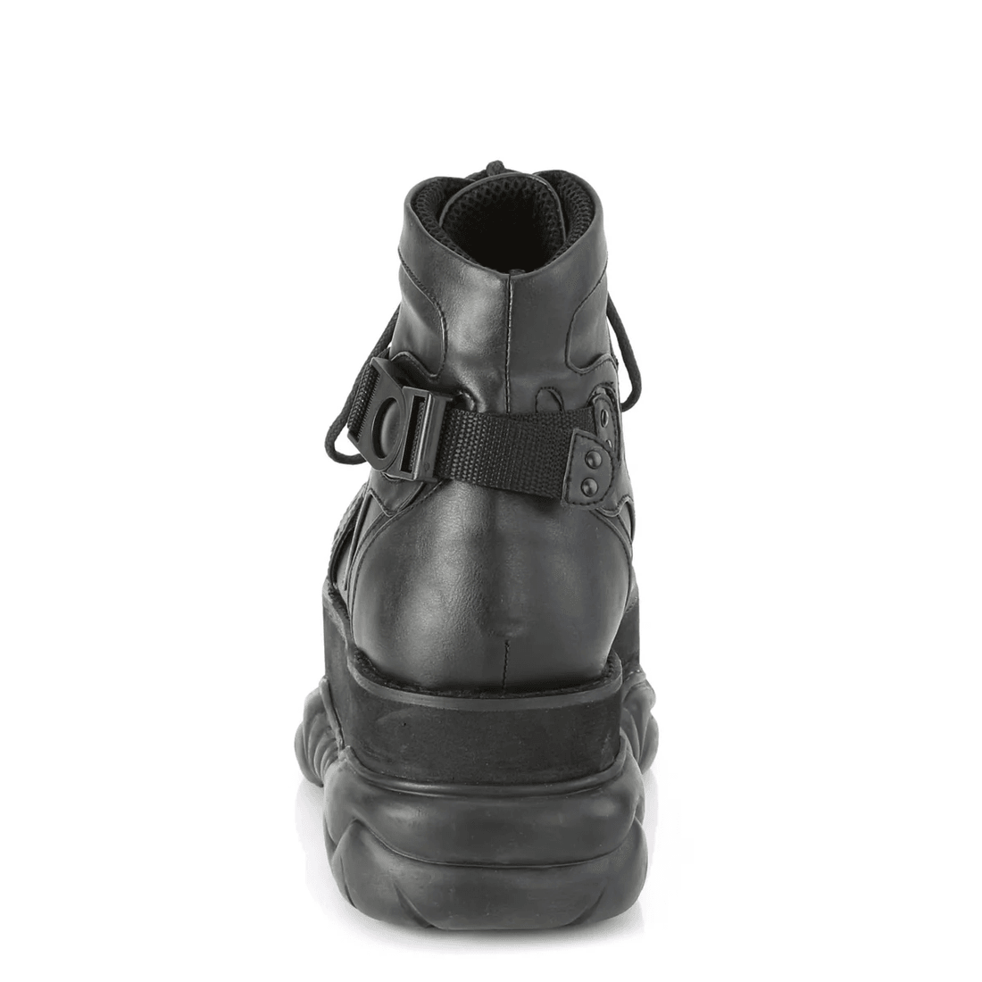 Crafted from premium black vegan leather, the Neptune-181 boots offer a guilt-free alternative to traditional leather without compromising on style. Embrace your individuality and complete your alternative look with these standout ankle boots that are sure to turn heads.