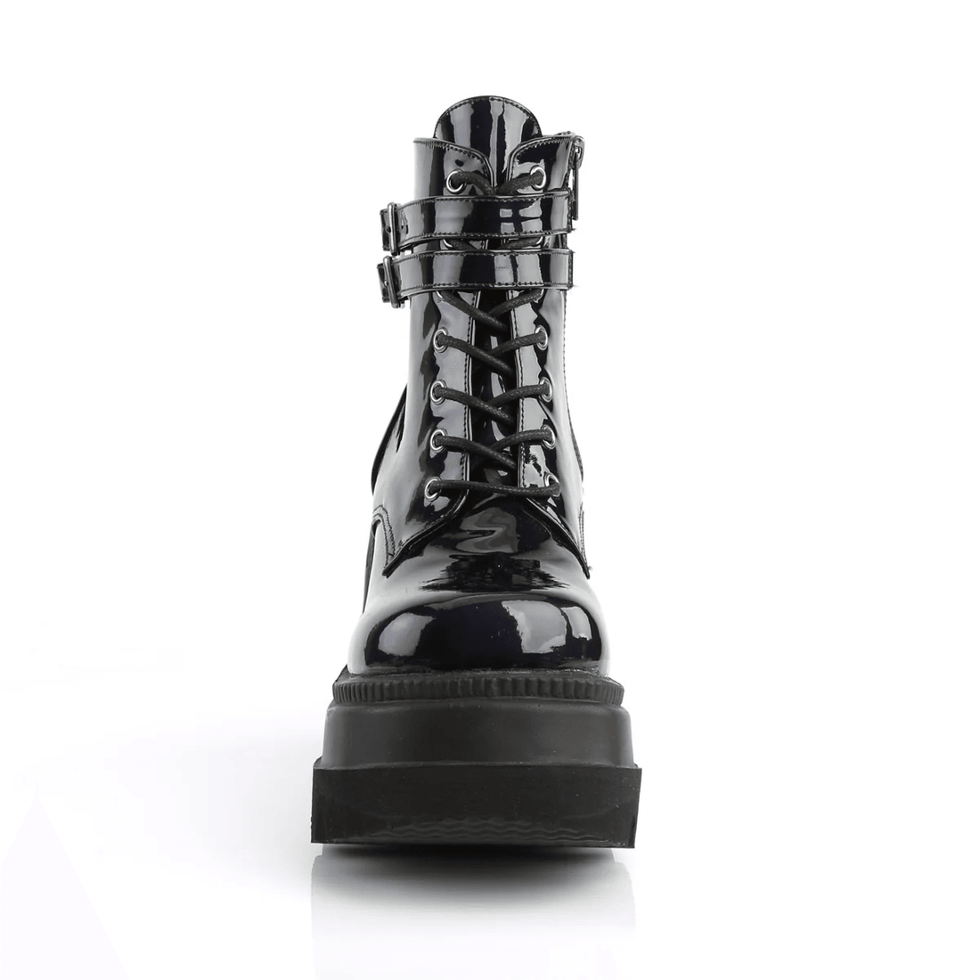 Elevate your footwear game with the Demonia Cult Shaker-52 Black Hologram ankle boots. These striking lace-up boots are designed for those who dare to stand out, featuring a bold 4 1/2" wedge platform that instantly adds height and attitude to any outfit.