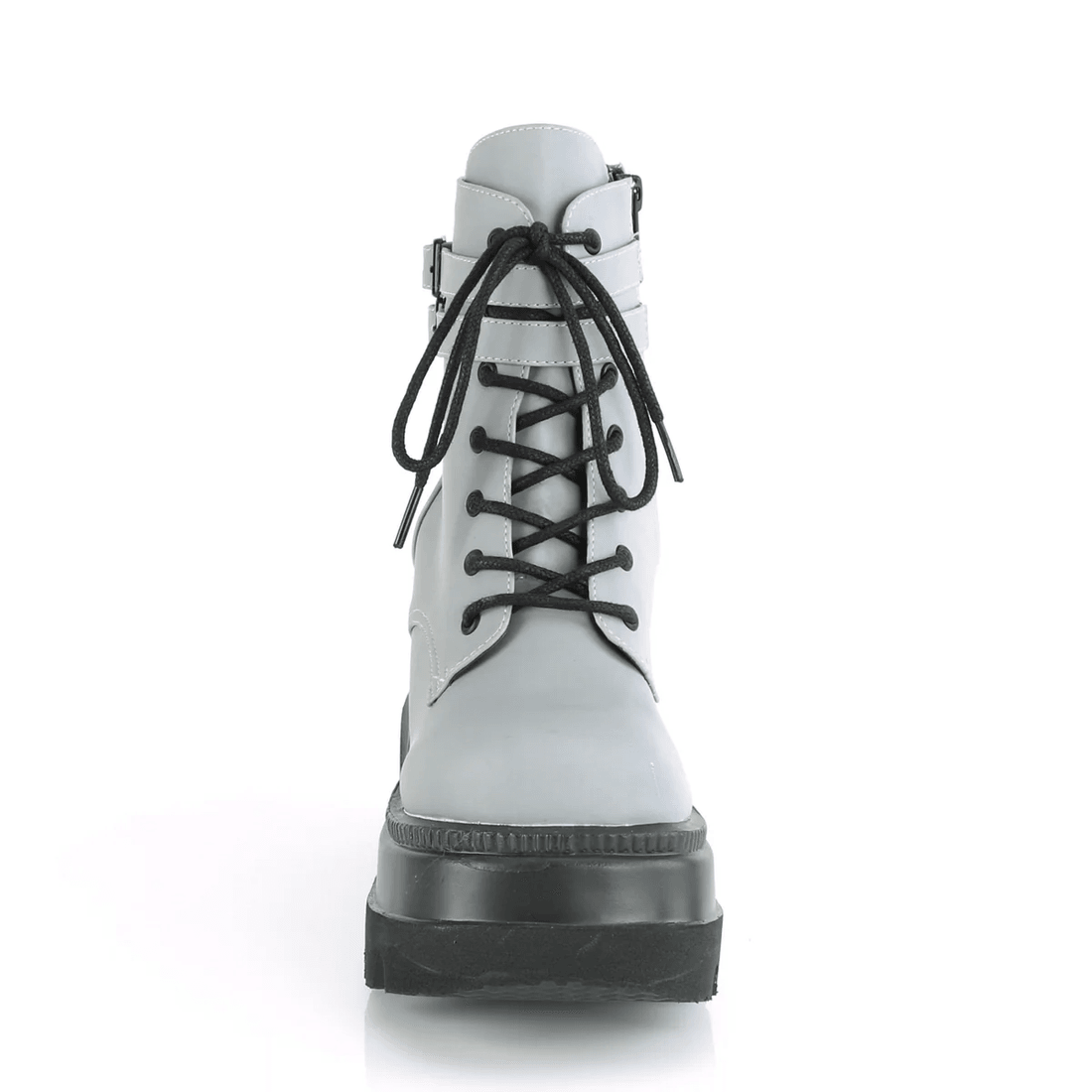 Demonia Cult Shaker-52 Gray Reflective Ankle Boots