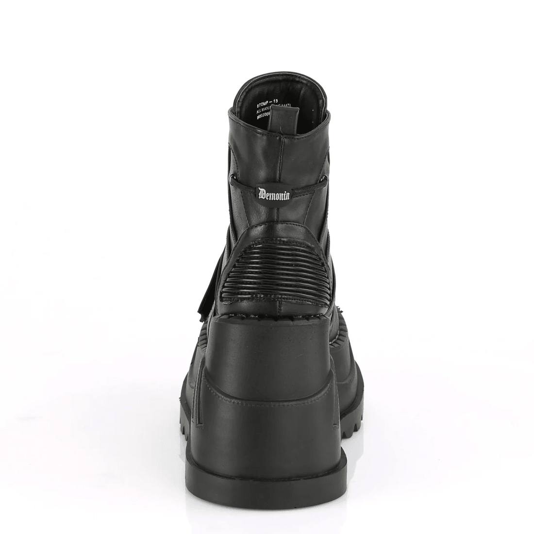 Elevate Your Style with Demonia Cult Stomp-13 Black Vegan Leather Boots