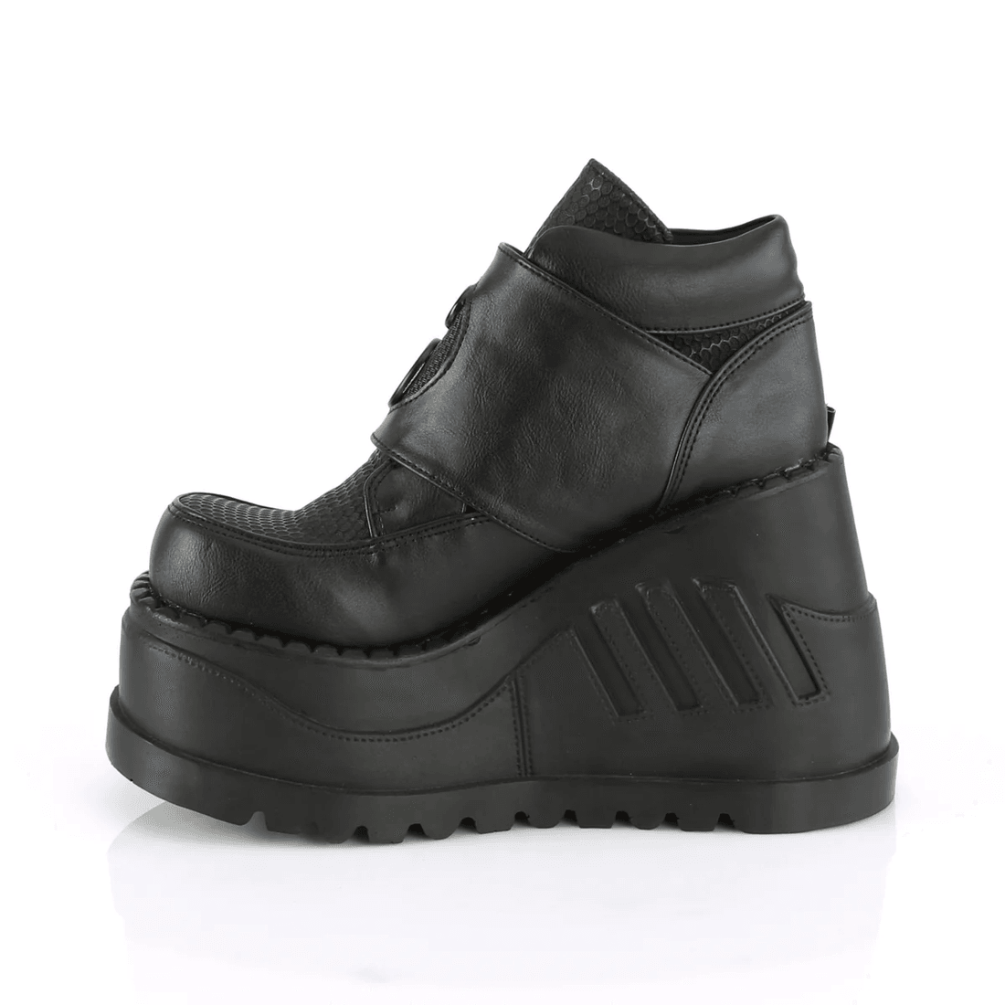 Elevate Your Style with Demonia Cult Stomp-15 Black Vegan Leather Booties