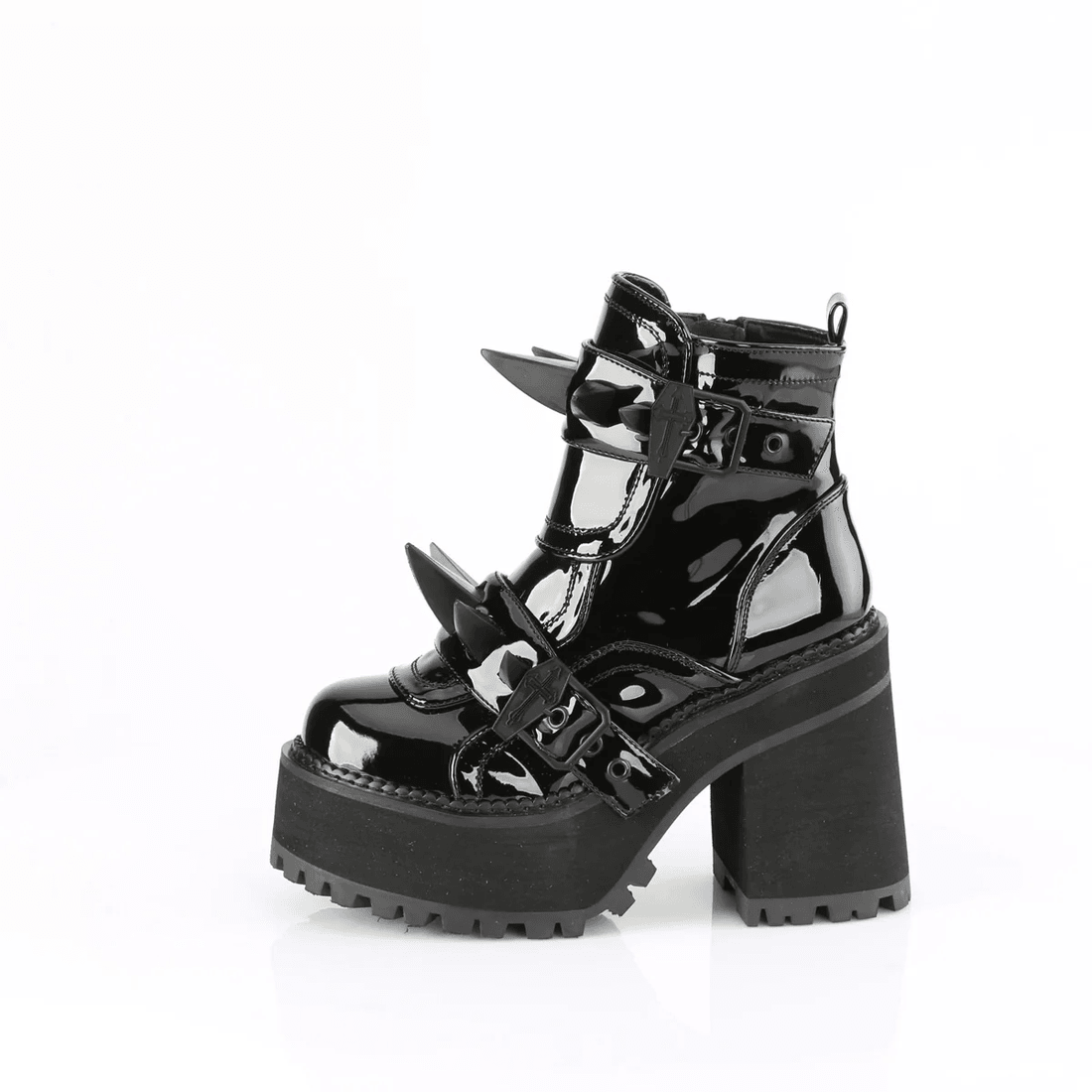 Demonia Cult Assault-72 Black Patent Ankle Boots