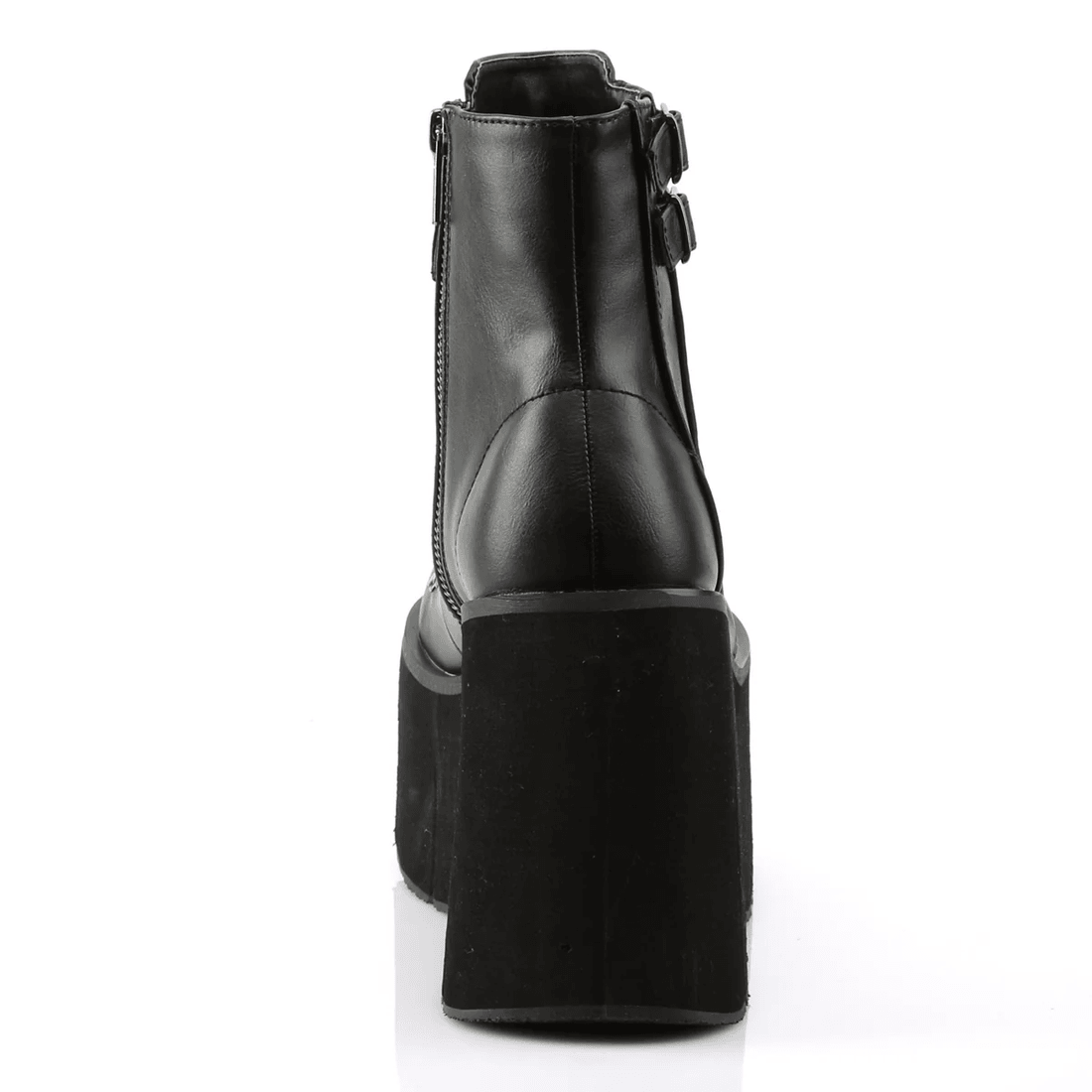 Elevate your footwear collection with the Demonia Cult Kera-21 Black Vegan Leather ankle boots. Designed for the bold and edgy, these boots combine fashion and function, making them a must-have for any wardrobe. With a stunning 4 1/2" platform, they provide an eye-catching lift while ensuring comfort and style.