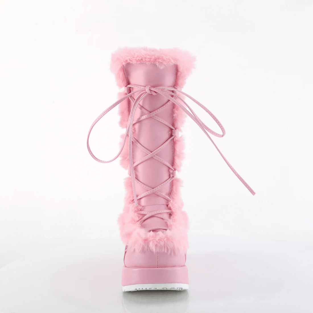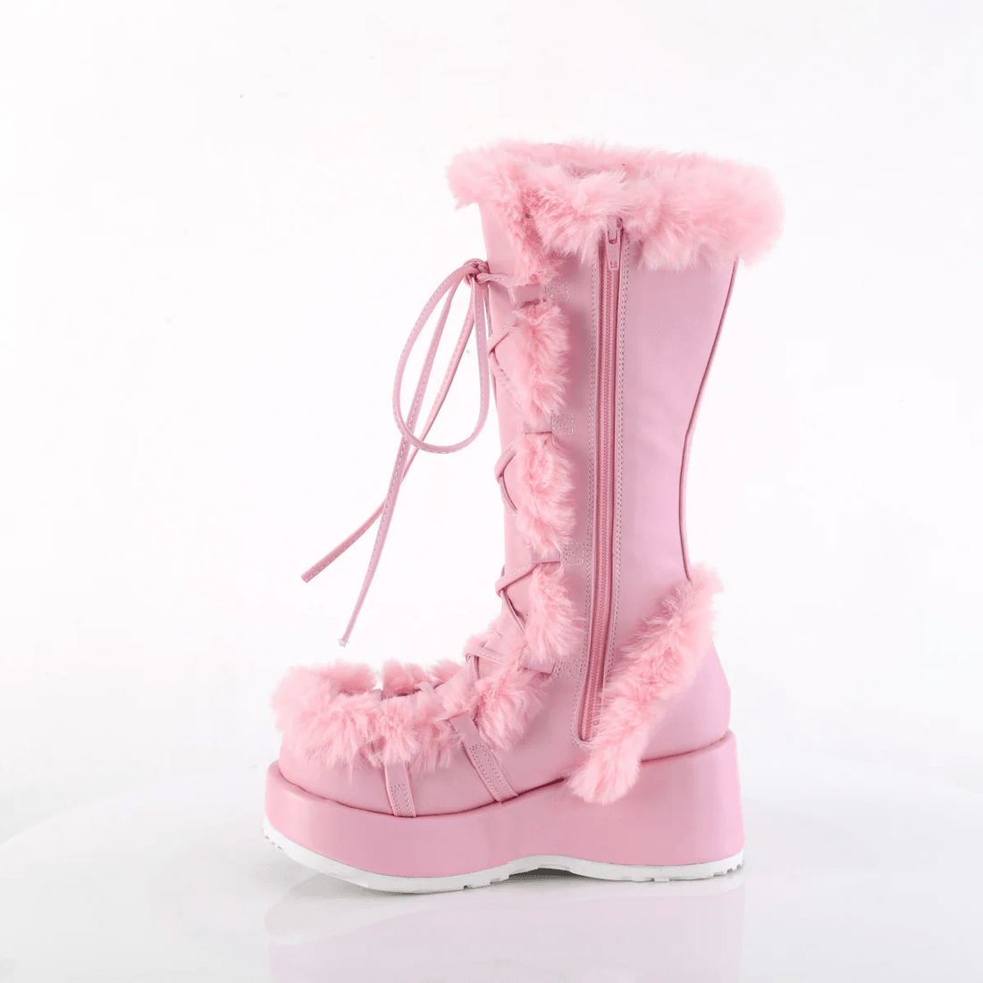 Don't miss out on the chance to redefine your style. Grab your pair of Demonia Cult Cubby-311 Baby Pink Vegan Leather boots today and step into a world of bold fashion!