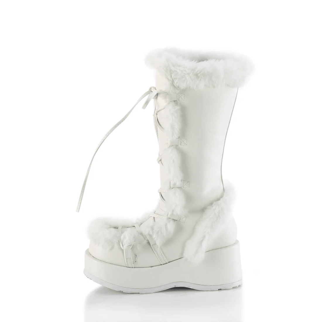Don't miss out on making a bold statement. Get your Demonia Cult Cubby-311 White Vegan Leather boots today and step into style!
