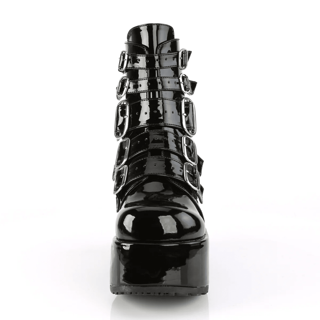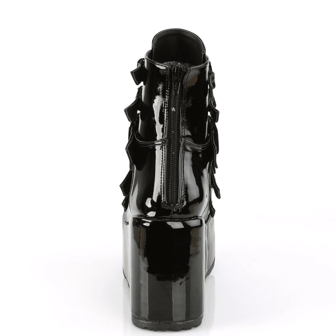demonia Cult Concord-57 černé Lakované Kotníkové Boty Září Svým Lesklým Povrchem, Což Je činí Vhodnými Jak Pro Neformální, Tak Pro Slavnostní Příležitosti. Kombinujte Je S úzkými Džíny Pro Odvážný Vzhled Nebo Je Stylizujte S Mini šaty, Abyste Ukázali Svůj Odvážný Módní Vkus. Tyto Boty Nejsou Jen Obuví; Jsou Prohlášením Individuality A Stylu.