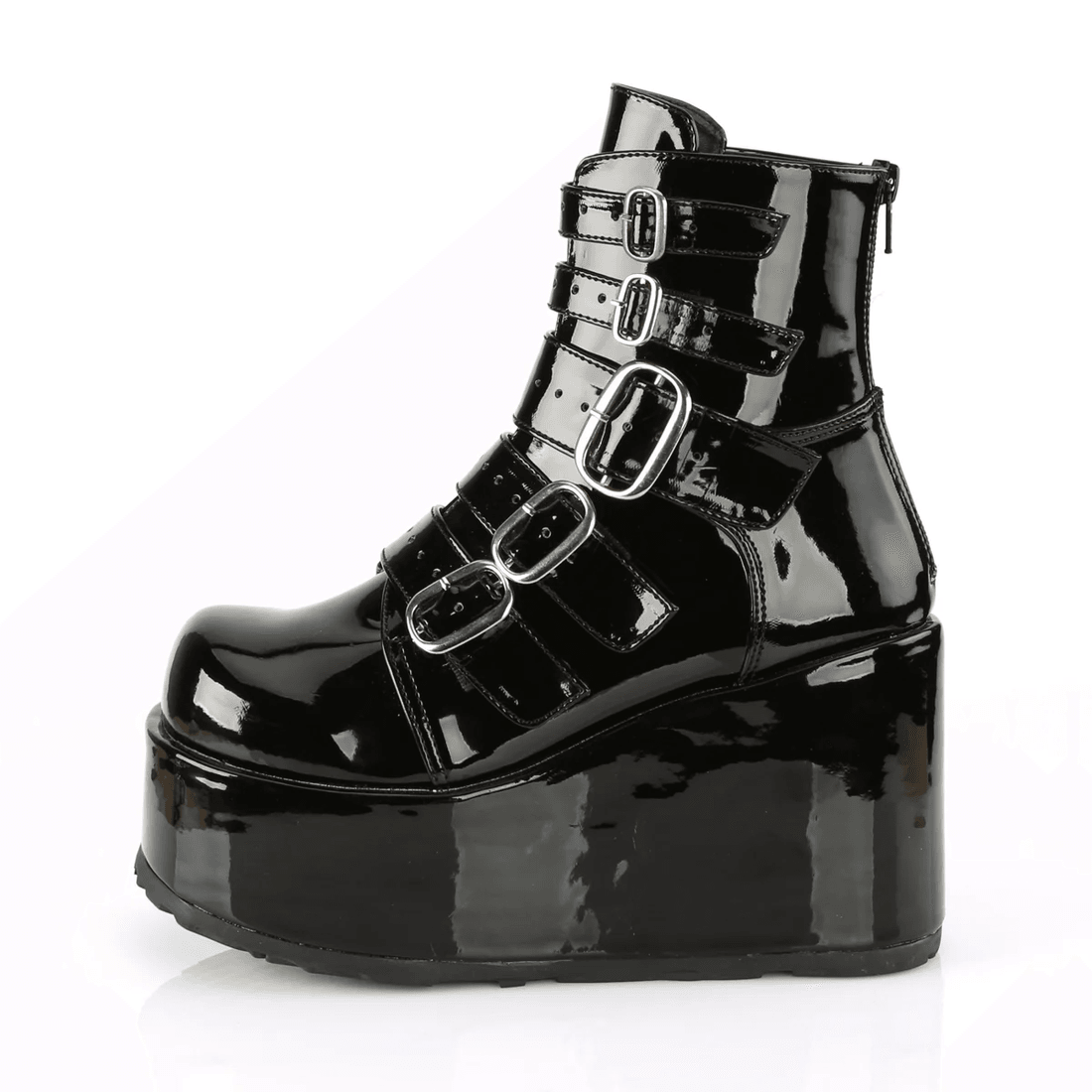 pozvedněte Svou Kolekci Obuvi S demonia Cult Concord-57 černými Lakovanými Kotníkovými Botami. Tyto Nápadné Boty Kombinují Punkovou Estetiku S Moderním Designem, Což Z Nich činí Nezbytnost Pro Módně Uvědomělé Jedince. Stojí Na Vysoké Platformě 4 1/4", Což Je Dokonalý Výrazný Kousek Pro Jakýkoli Outfit.
