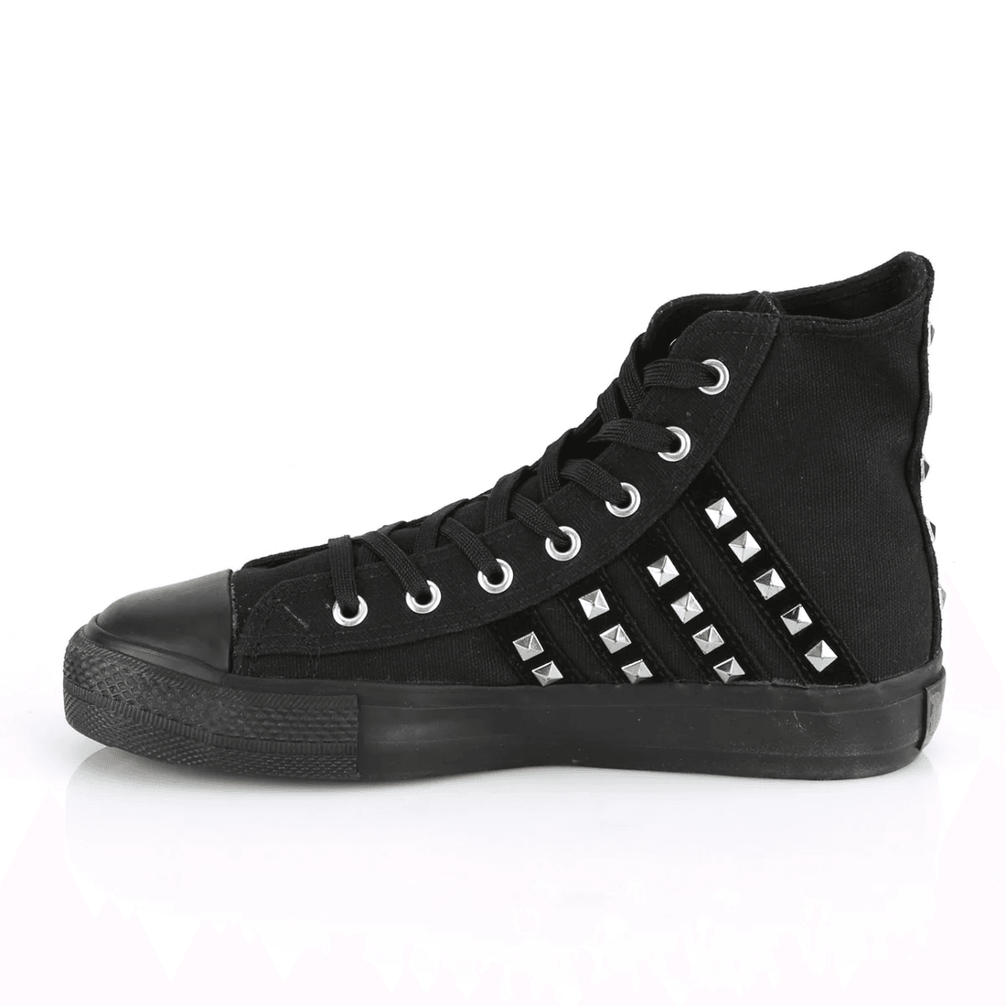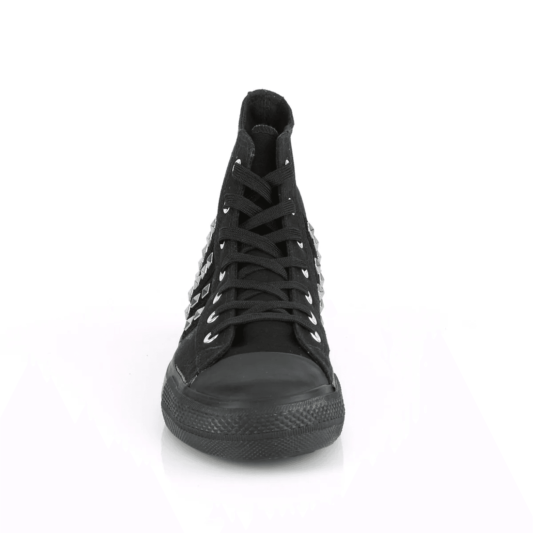 Unleash your inner rebel with the Demonia Cult Deviant-103 Black Canvas-Suede sneakers. These punk goth skater high-tops are designed for those who dare to stand out. Exclusively available at demoniacult.com, these sneakers combine edgy aesthetics with ultimate comfort.