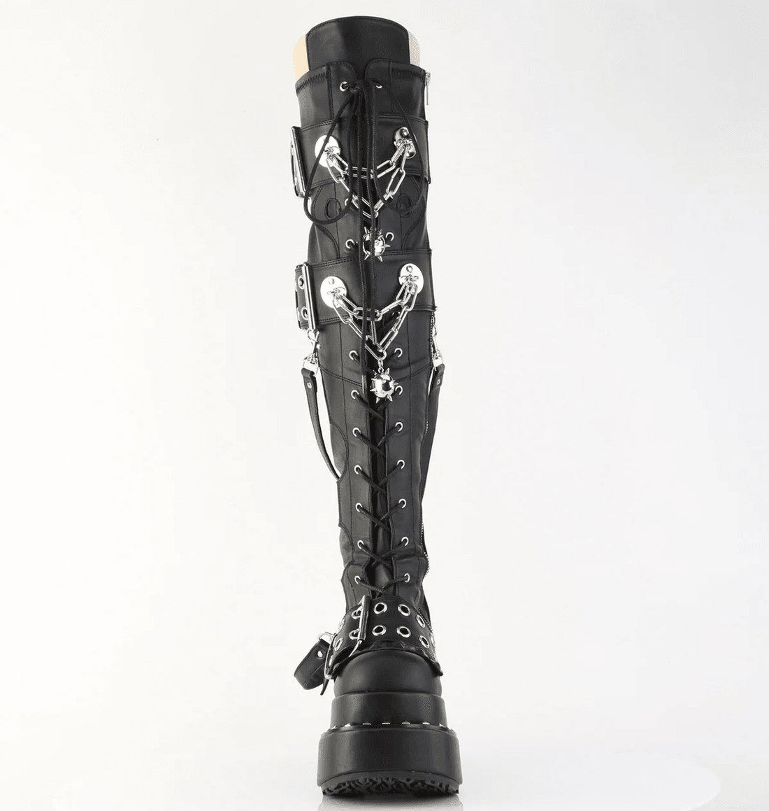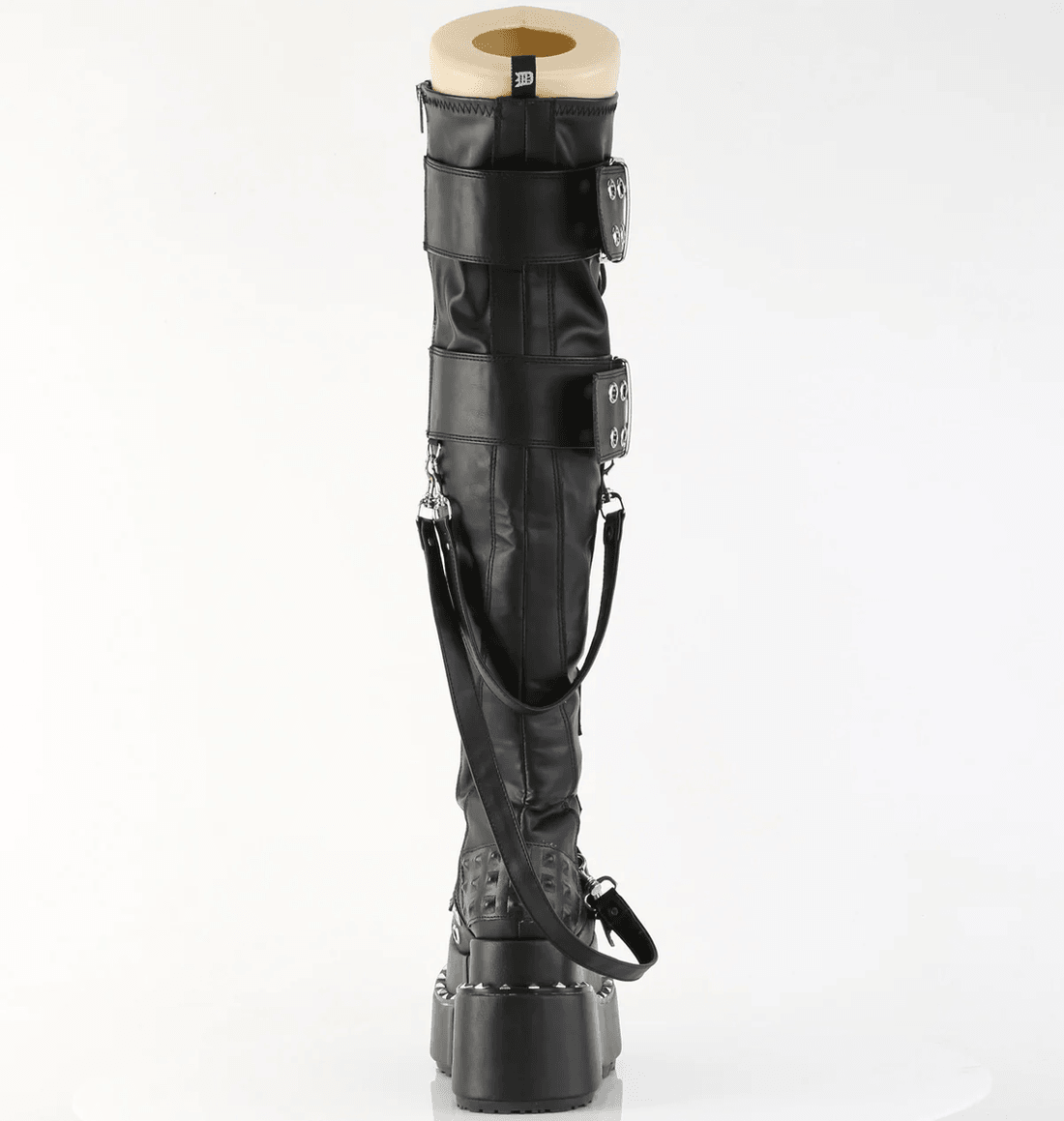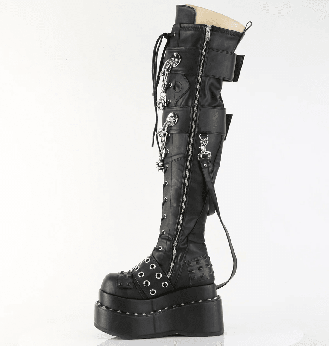 Step into the spotlight with the Demonia Cult Bear-316 Black Vegan Leather over-the-knee boots. Designed for the bold and daring, these stunning boots feature a unique blend of rebellious flair and unmatched comfort. Whether you're hitting the concert scene or strutting down the street, these boots are sure to turn heads.