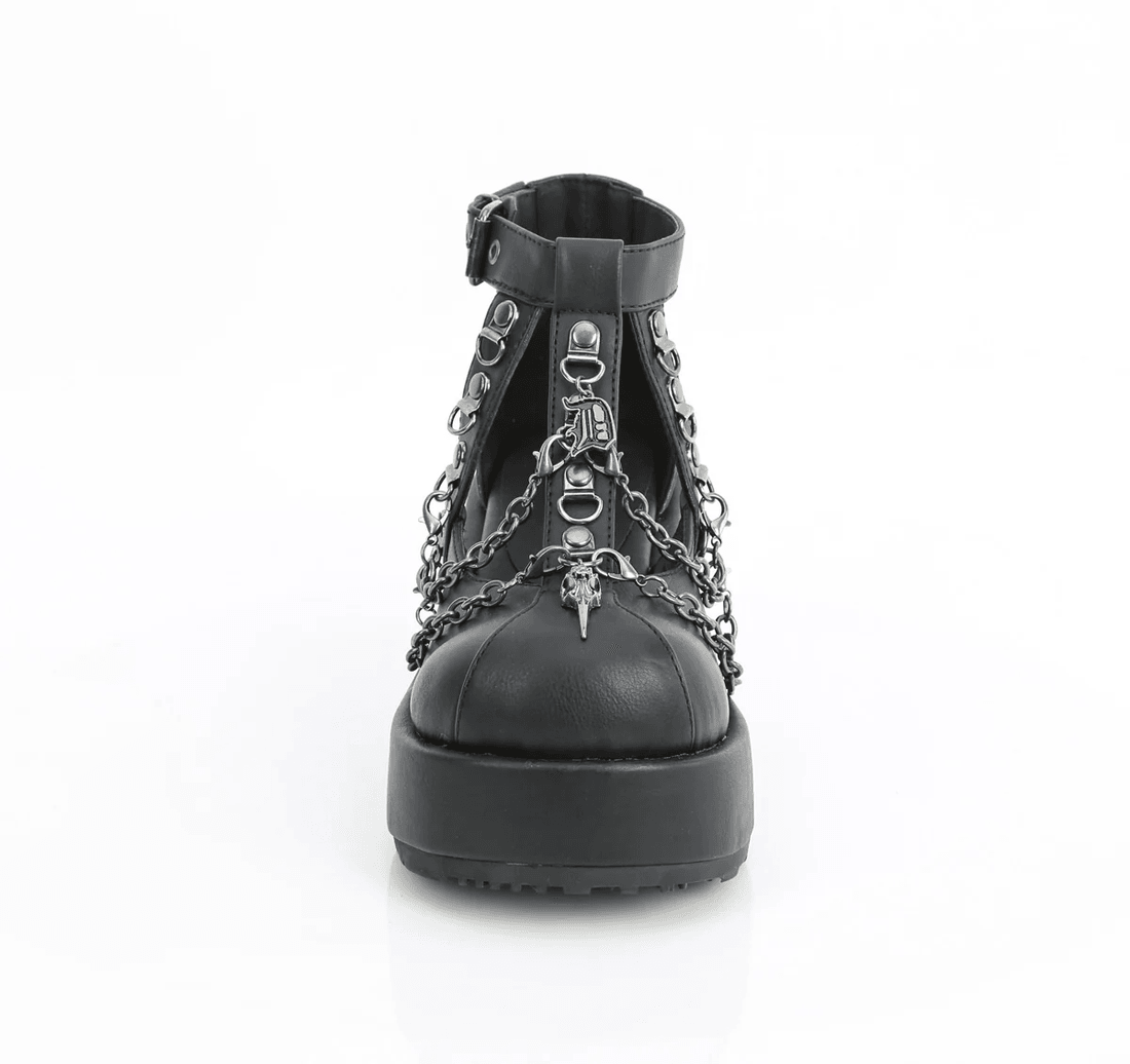 The Demonia Cult Cubby-28 Black Vegan Leather shoes are perfect for festivals, parties, or simply making a statement on the street. The cage design not only enhances breathability but also adds an edgy touch to your ensemble. Pair them with your favorite skirts, shorts, or even jeans for a versatile look that stands out.