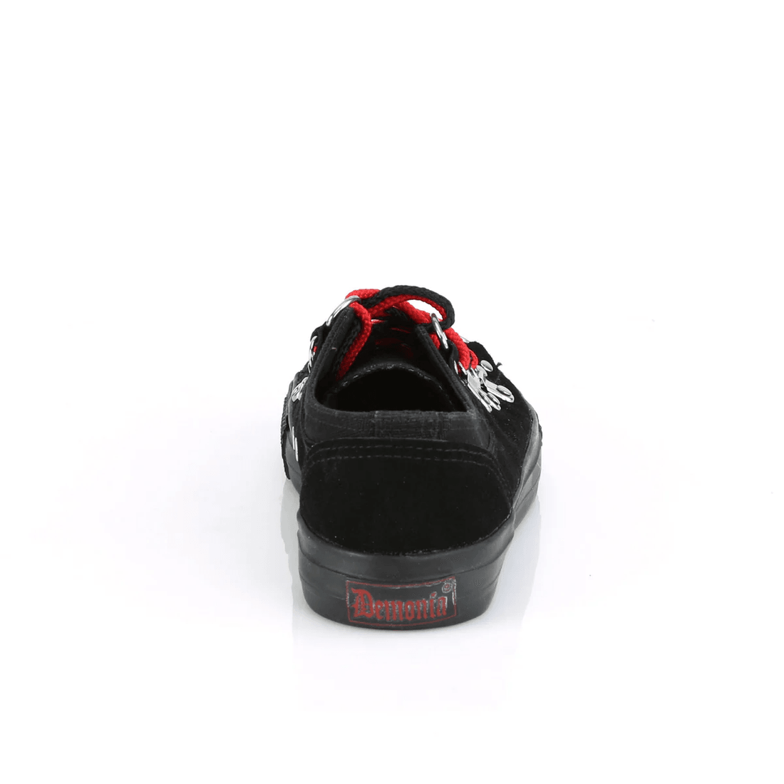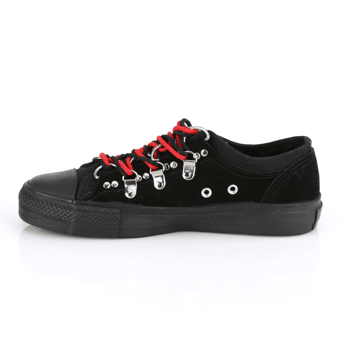 Visit demoniacult.com to secure your pair of Demonia Cult Deviant-05 Black Canvas-Suede sneakers today. Embrace your unique style and make a bold fashion statement!