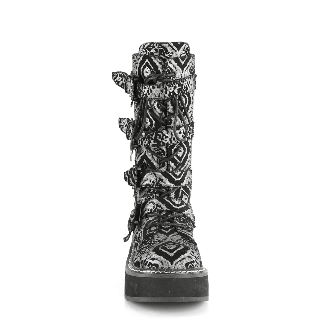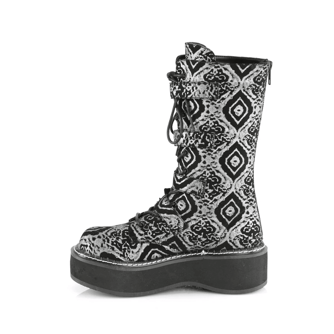 Step into a world of edgy elegance with the Demonia Cult Emily-322 Black-Silver Faux Nubuck Leather boots. These mid-calf boots are designed for those who embrace a unique style, combining comfort and striking aesthetics. The 2" platform elevates your look while ensuring you feel confident and secure with every step.