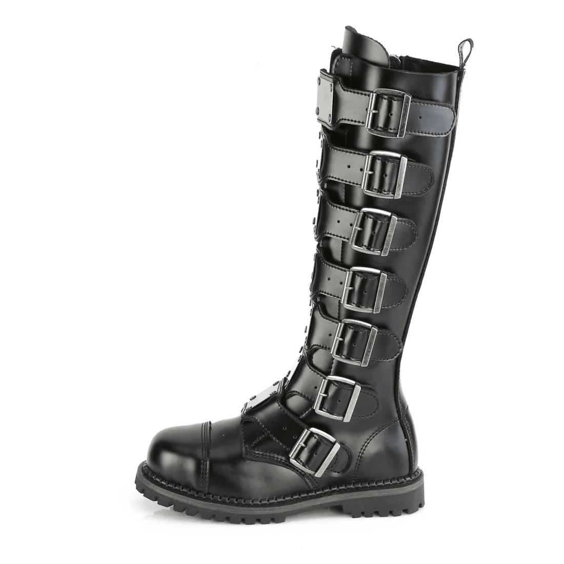 avasta Demonia Cult Riot-21mp Musta Nahast Põlvini Saapad