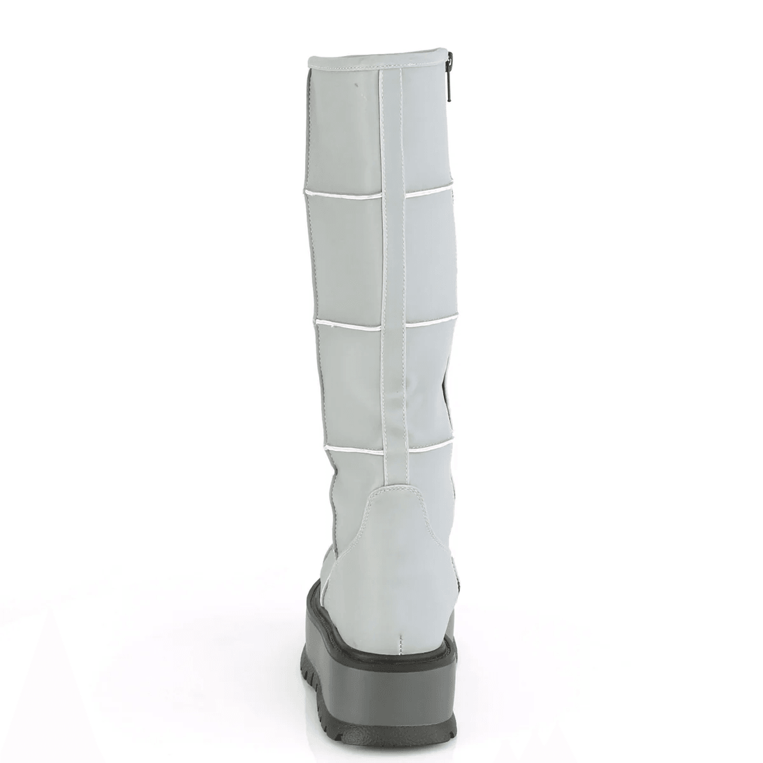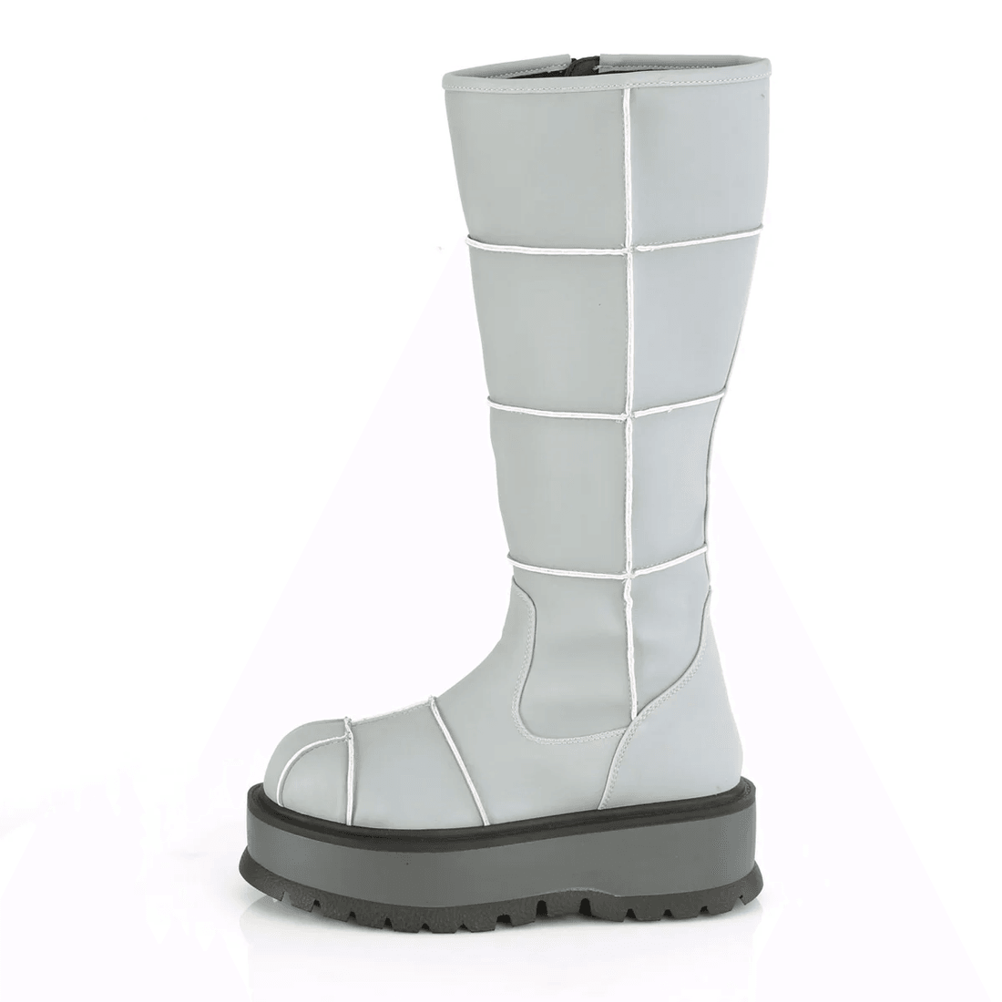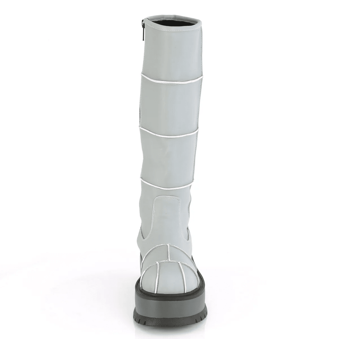 デモニア カルト スラッカー-230 グレー リフレクティブ ヴィーガン レザー ブーツ