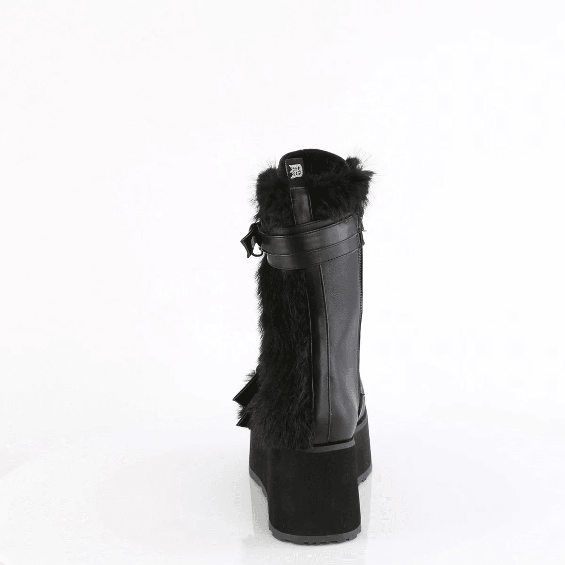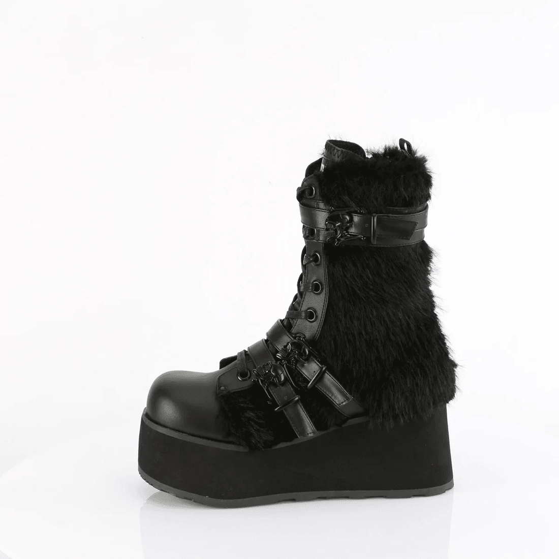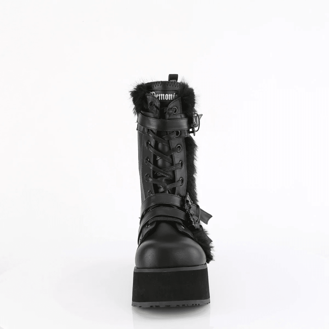 Demonia Cult Trashville-218 Black Vegan Leather-Faux Fur