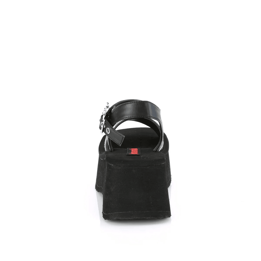 Step into style and make a bold statement with the Demonia Cult Funn-10 Black Vegan Leather ankle strap sandals. Designed for those who embrace individuality, these sandals are perfect for any occasion, whether you're attending a concert, hitting the club, or running errands.