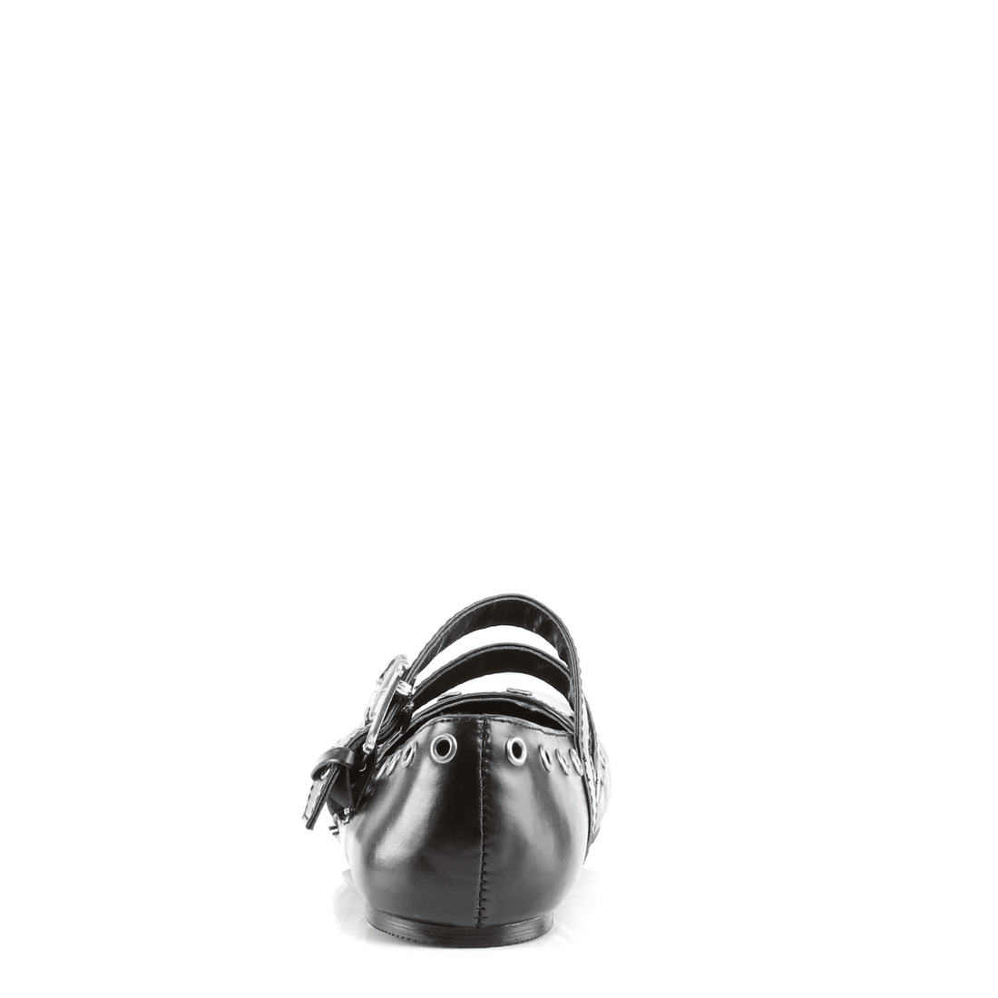 The Demonia Cult Daisy-03 flats are not just shoes; they are a statement. With their striking skull buckle eyelet detailing and unique double strap configuration, these flats effortlessly infuse your outfit with a rebellious flair. The black vegan leather construction ensures that you can enjoy a stylish look while supporting sustainable fashion choices.