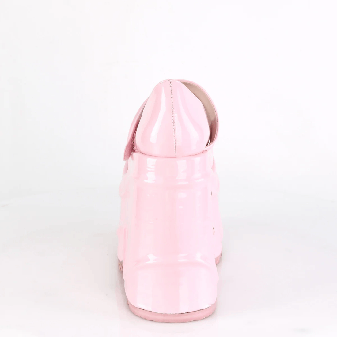 Step into the spotlight with the Demonia Cult Wave-32 Baby Pink Hologram shoes. These eye-catching wedges blend retro charm with a modern twist, making them the perfect statement piece for any outfit. With a striking baby pink hologram finish, these shoes are designed to turn heads wherever you go.