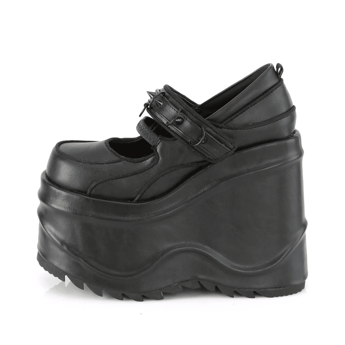 Whether you're dressing up for a concert or looking to elevate your everyday outfit, the Demonia Cult Wave-48 Black Vegan Leather is your go-to choice. Pair them with your favorite dress or edgy denim for an unforgettable look.