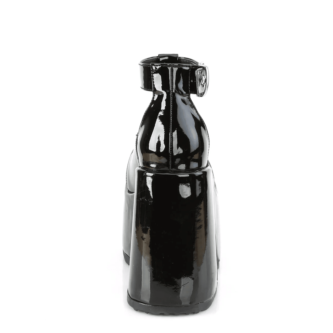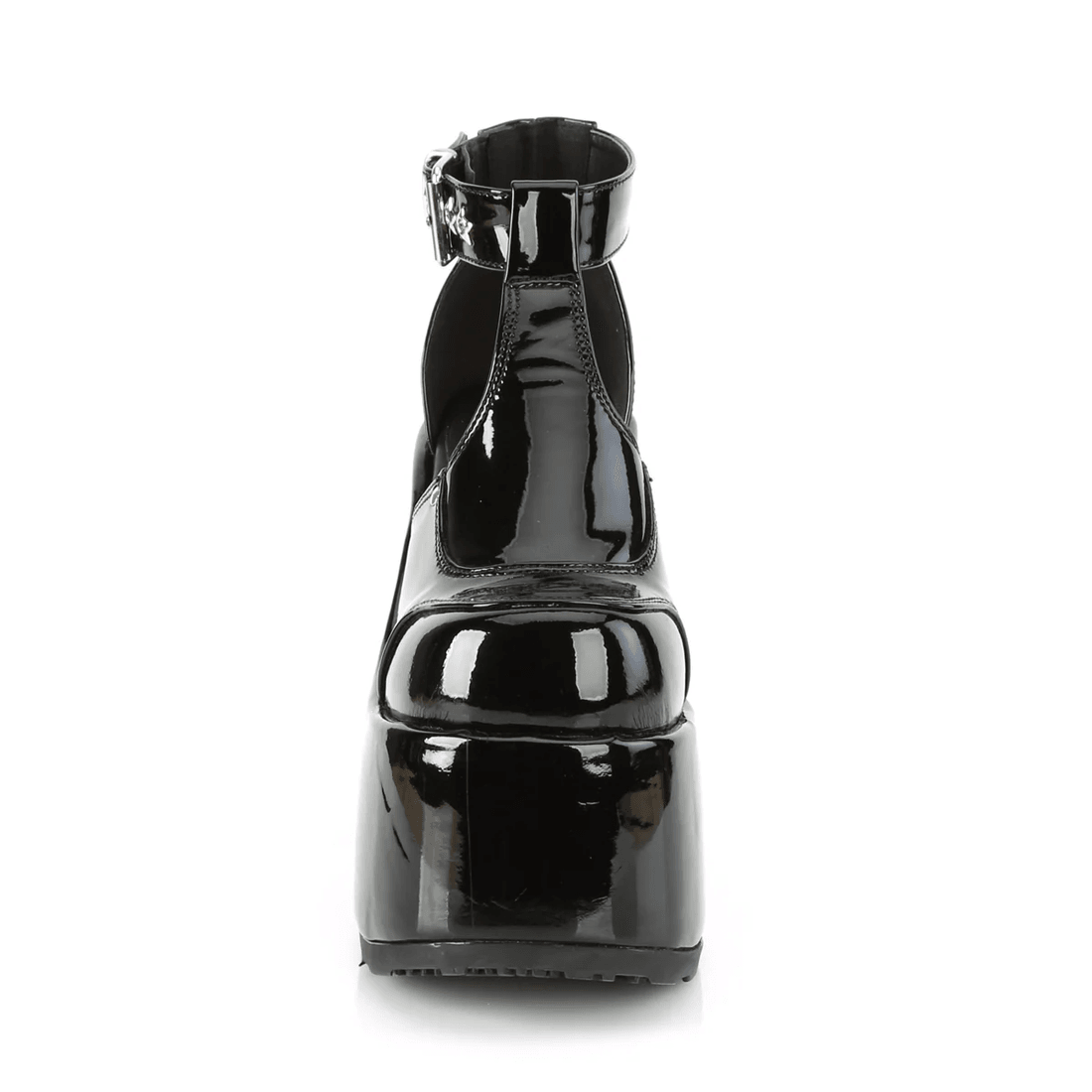 Step Up Your Style with Demonia Cult Camel-103 Black Patent Sandals