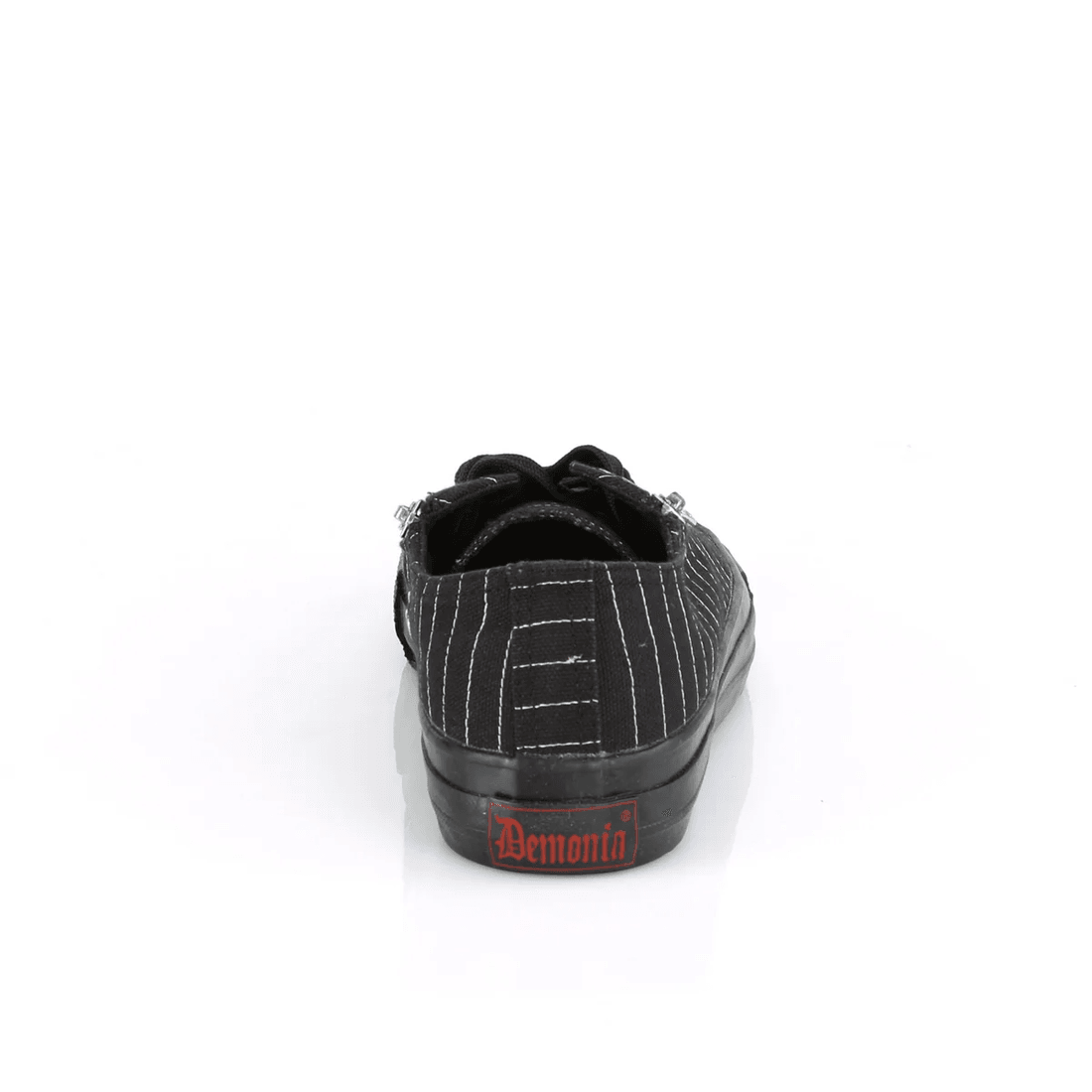 Demonia Cult Deviant-06 Black Canvas-White Pinstripes