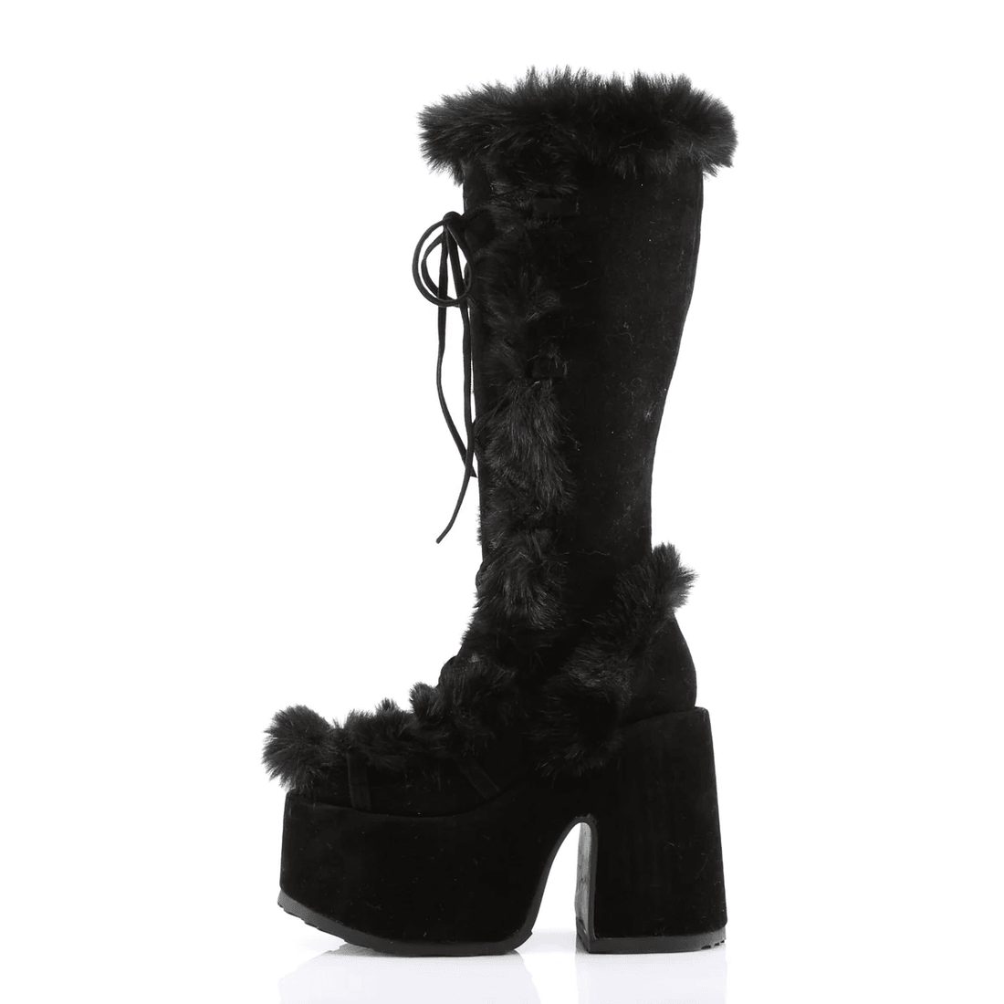 škornji demonia Cult Camel-311 črni Veganski Semiš So Več Kot Le Obutev; So Izjava. Eleganten črn Umetni Semiš In Privlačna Platforma Ustvarjata Osupljivo Silhueto, Medtem Ko Detajli Iz Umetnega Krzna Dodajajo Pridih Razkošja. Ne Glede Na To, Ali Jih Kombinirate Z Drznim Outfitom Za Nočni Izhod Ali Dodajate Edgy Pridih Svojemu Vsakodnevnemu Videzu, So Ti škornji Zasnovani, Da Navdušijo.