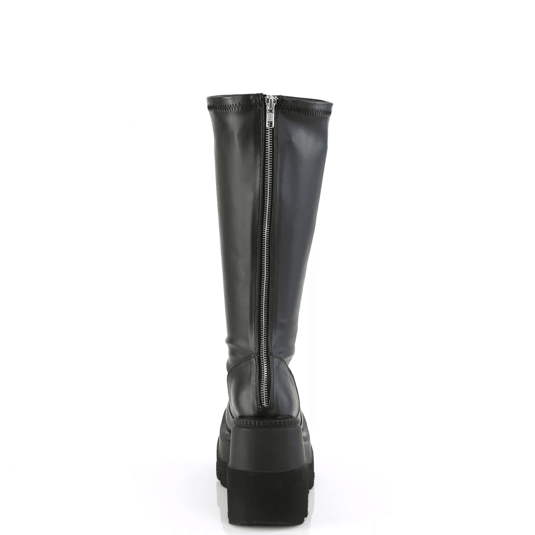 demonia Cult Shaker-65wc Ni Le škorenj; Je Izjava. Z Višino špice Približno 13.8", Ti škornji Do Kolen Zagotavljajo Popolno Pokritost, Hkrati Pa Zagotavljajo Stilizirano Silhueto. Raztegljivo Vegan Usnje Se Prilega Vašim Nogam In Ponuja Udoben Fit Za Nošenje čez Ves Dan, Ne Da Bi Pri Tem Ogrozili Slog.