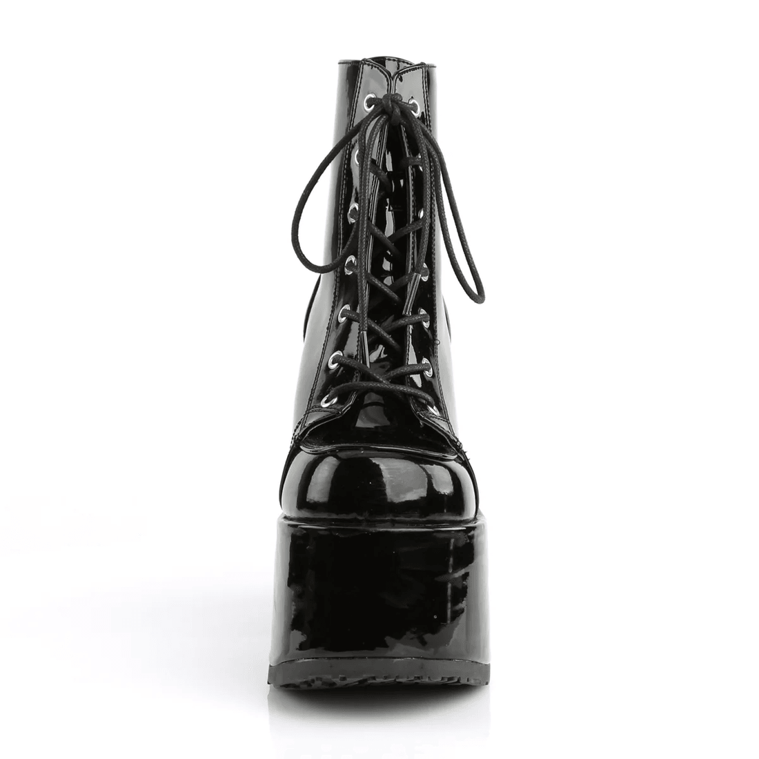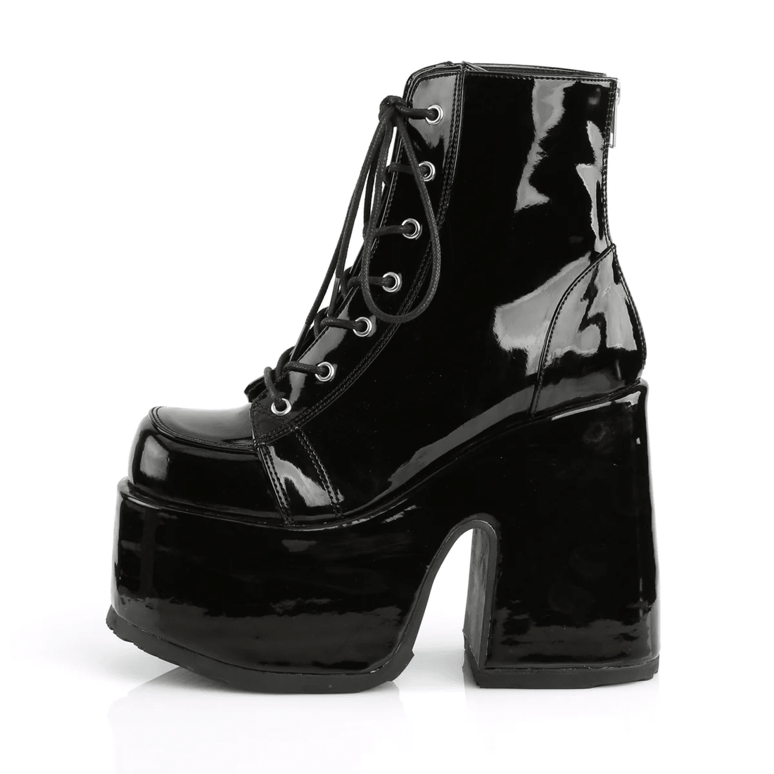zakoračite U Stil Sa demonia Cult Camel-203 Crnim Lakovanim čizmama Do članaka, Gde Se žestoka Moda Susreće Sa Neprevaziđenim Komforom. Ove čizme Su Dizajnirane Za Hrabre, Sa Masivnom Petom Od 5" I Platformom Od 3" Koja Podiže Vaš Izgled I Samopouzdanje. Savršene Za Izlazak Ili Dodavanje Smelog Obrta Vašoj Svakodnevnoj Odeći, Ove Zapanjujuće čizme Sigurno će Vas Učiniti Centrom Pažnje.