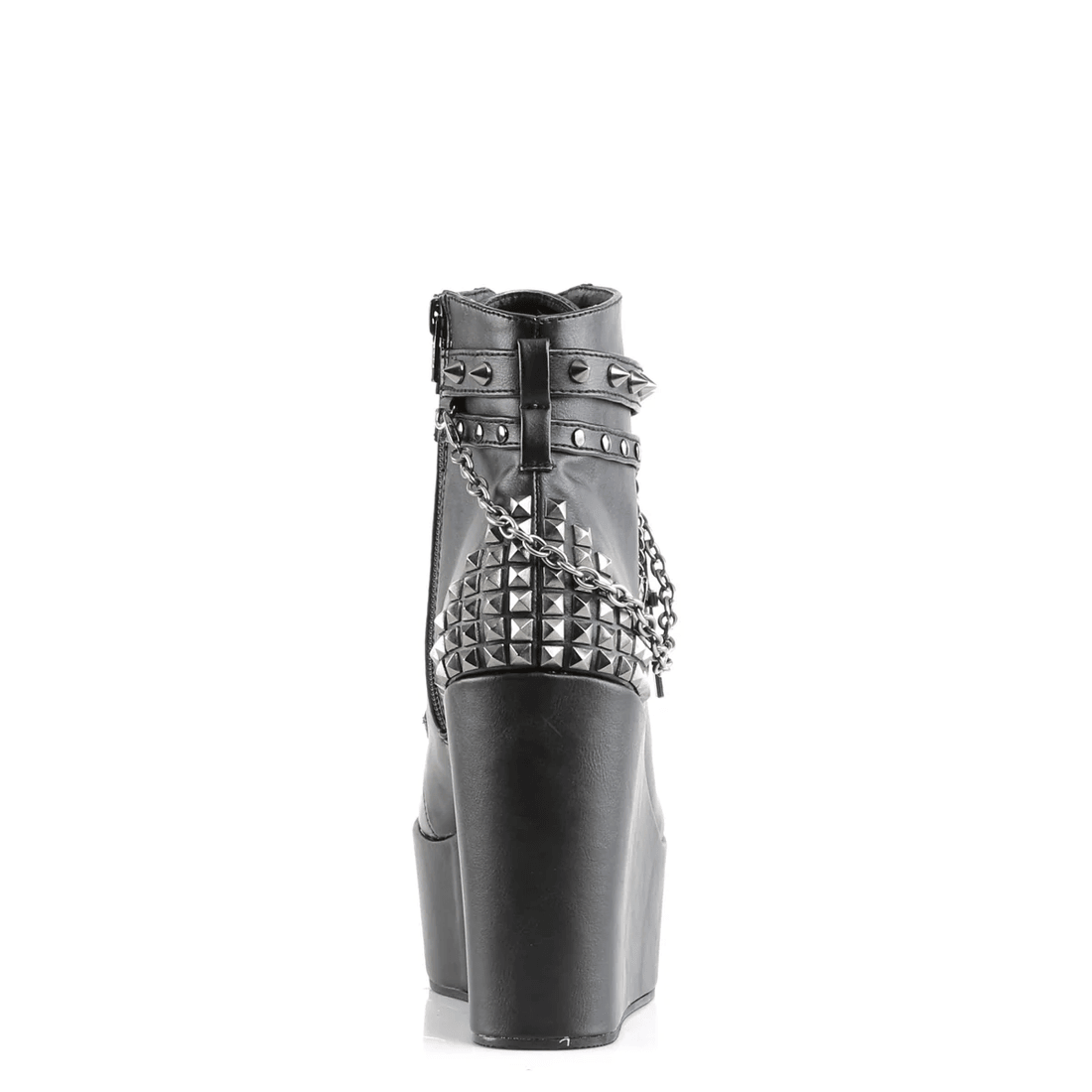 zakoračite U Centar Pažnje Sa demonia Cult Poison-101 Crnim Veganskim Kožnim čizmama Do članaka. Dizajnirane Za One Koji Se Usuđuju Da Se Istaknu, Ove čizme Kombinuju Oštru Estetiku Sa Ultimativnom Udobnošću. Sa Upečatljivom Platformom Od 5", Savršene Su Za Podizanje Vaše Visine I Stila.