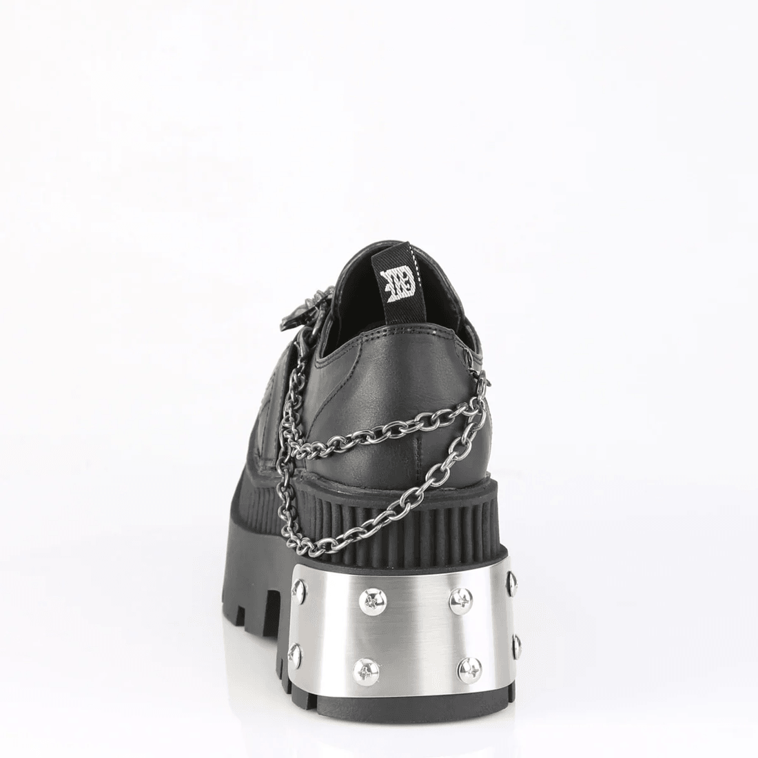 Whether you're rocking them with leather pants or pairing them with a vintage tee, the black vegan leather ensures versatility in your wardrobe. Perfect for those who love to showcase their individual style with an edge, the Demonia Cult Wrath-42 loafers are a must-have for your collection.
