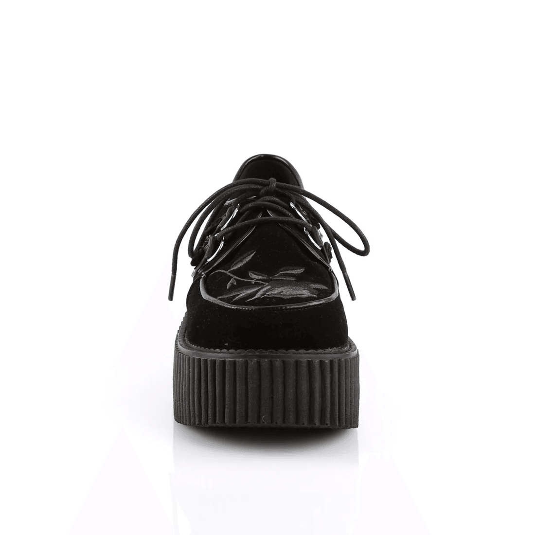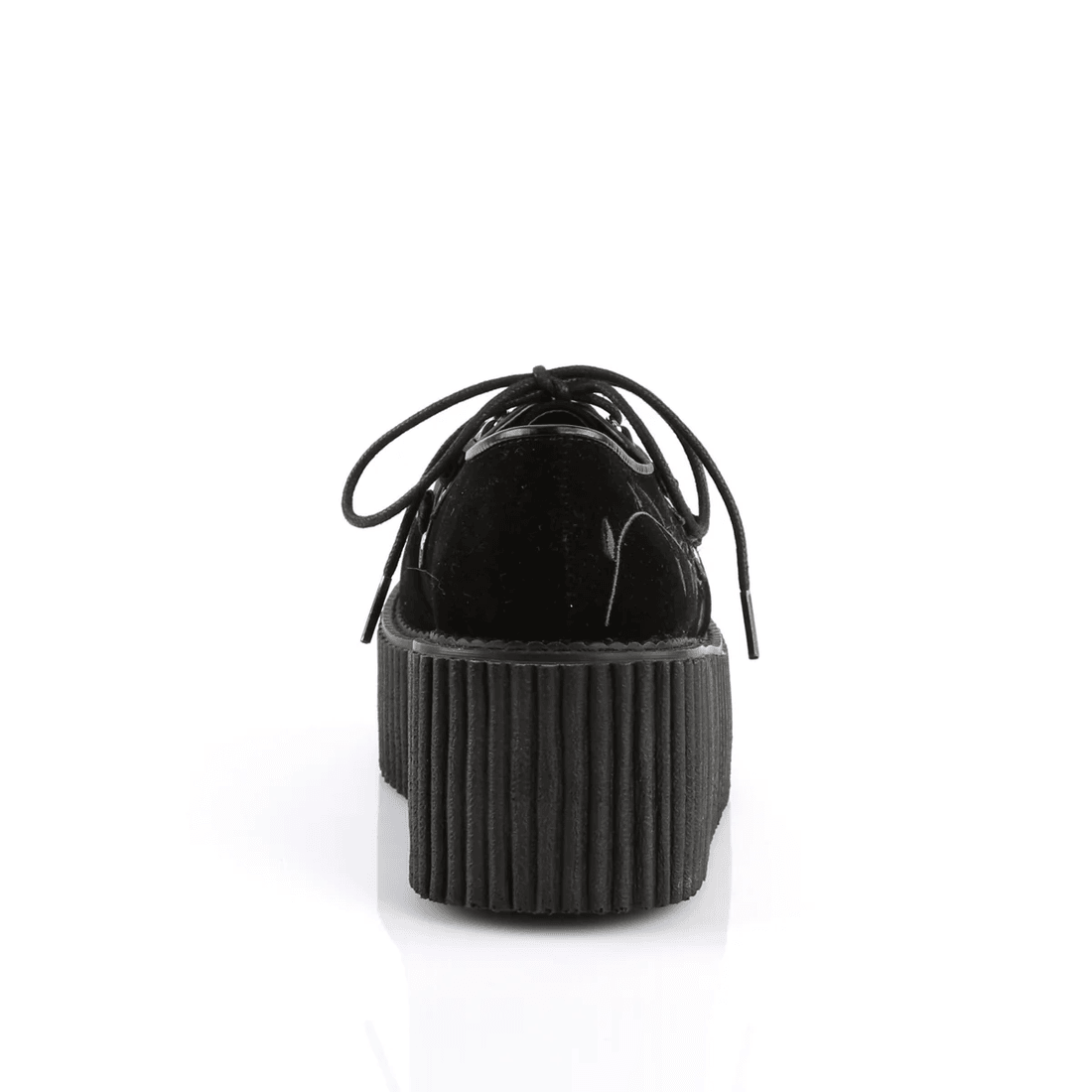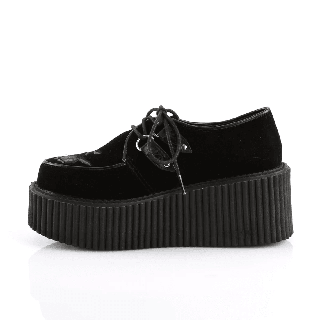 Whether you're heading out for a night on the town or meeting friends for a casual get-together, the Demonia Cult Creeper-219 Black Velvet will have you looking effortlessly chic. Experience the perfect combination of sophistication and comfort with every step you take.
